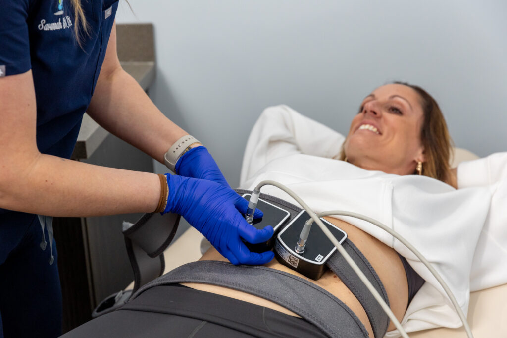 Well, without Evolve X that is! This unique 3-in-1 technology painlessly tightens sagging skin, reduces fat in problem areas, and tones your muscles. At our weight loss clinic in Nashville, our patients tend to go for this option as the “cherry on top,” optimizing how their physique looks now that they’ve improved their health with semaglutide or tirzepatide.